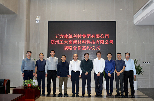 9月25日,鄭州工大高新材料科技有限公司(以下簡稱:工大科技)與五方建筑科技集團有限公司(以下簡稱:五方建筑)戰略合作簽約儀式在鄭州大學建筑科技研究中心舉行。工大科技董事長趙振波和五方建筑董事長崔國游代表雙方簽約。